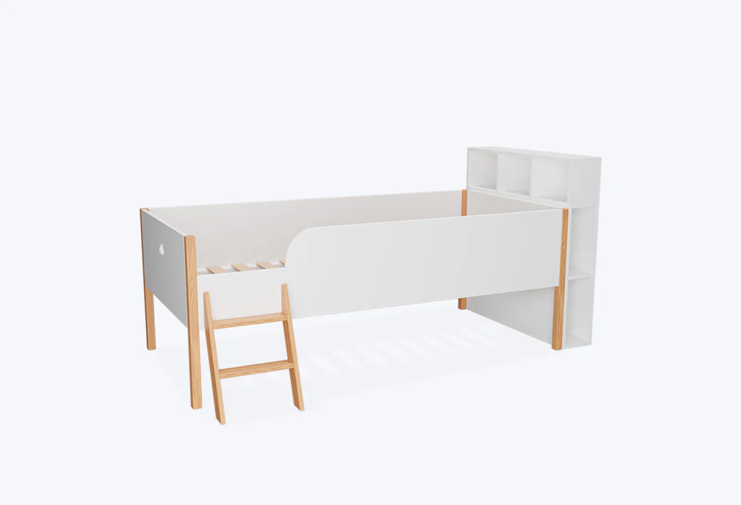 - Lit mi-hauteur bois et blanc